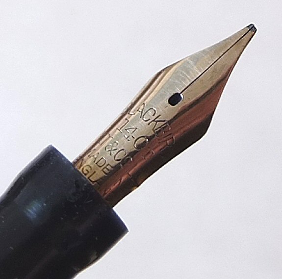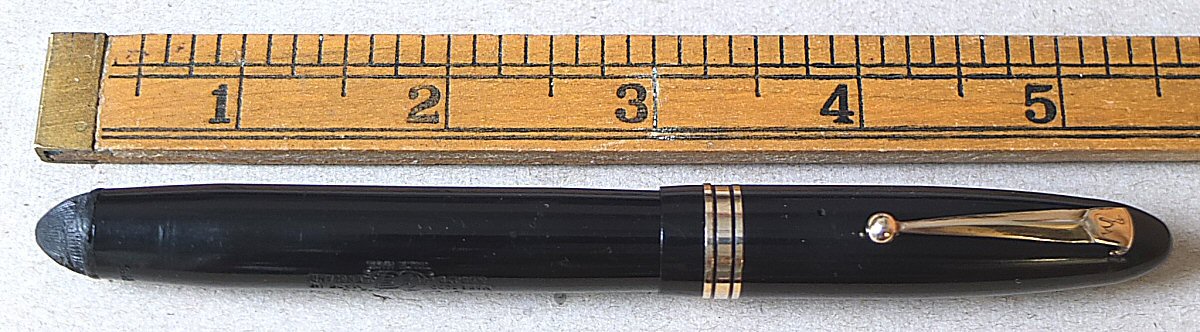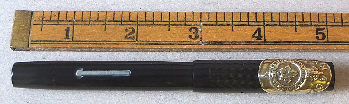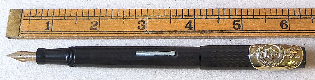 A most interesting BLACKBIRD 5261, bearing Canada's national crest, and the word CANADA around the top - probably made for use by Canadian forces over here during World War 2. Click HERE to see the crest. (For larger pictures, please click on the images below) ![]() with original BLACKBIRD FINE flexible nib Click HERE and HERE for pictures of the nib ![]() |
