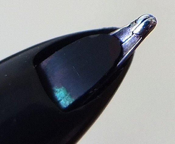 A mid-size MODERNE (a.k.a. Thriftime Duette Junior) (click on the images below for larger pictures) ![]() with its original Canadian FINE nib click HERE and HERE for pictures of the nib ![]() |
