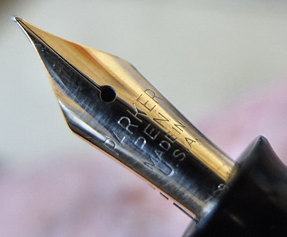 A not-so-often-found DEBUTANTE Vacumatic (3rd generation) (click on the images below for larger pictures) ![]() with what we presume is a later replacement New Haven MEDIUM nib (semi-flexible) - and could it have been original, if the pens were then being assembled over here ?....... click HERE and HERE for pictures of the nib ![]() |