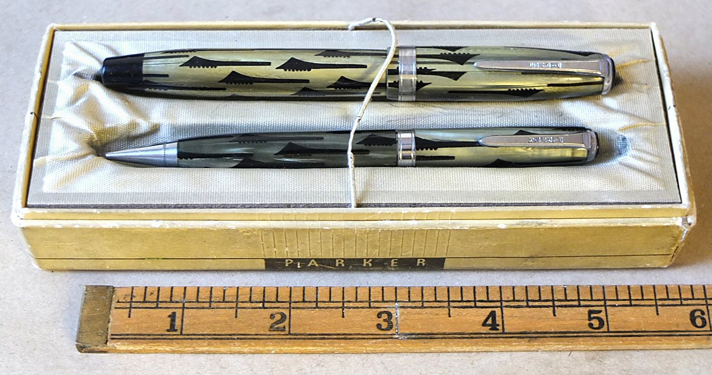 Silvery Grey and Black patterning with nickel-plated trim | c.1939/40 | Pen: EX