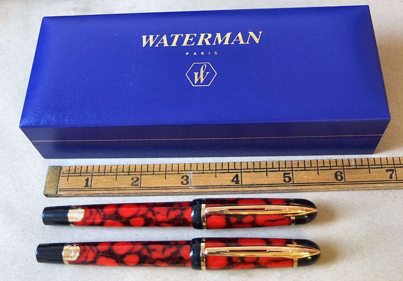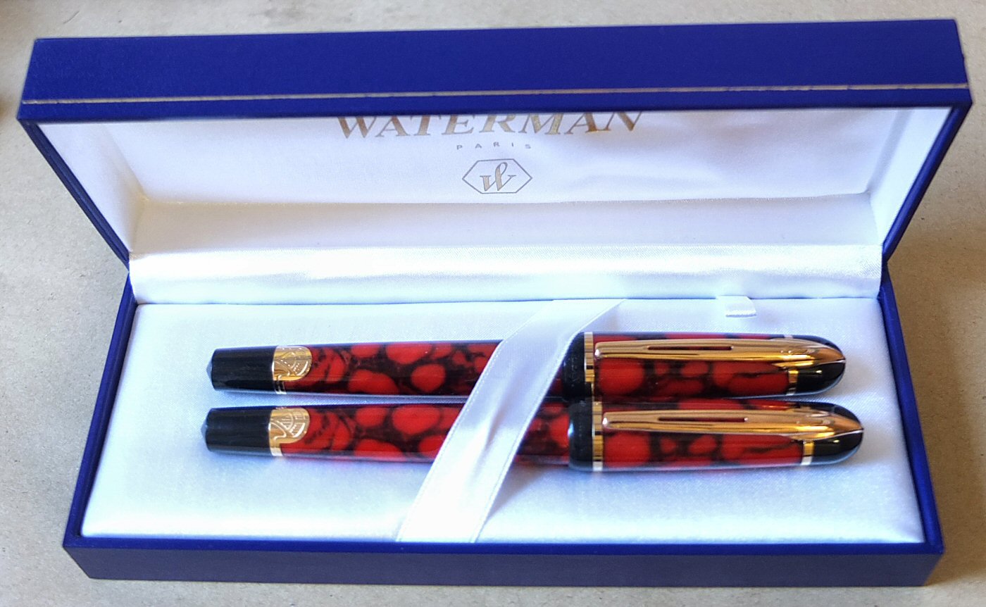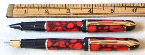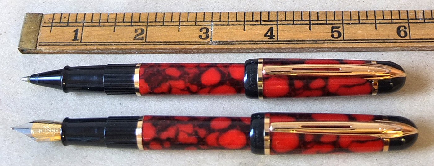 Striking Vermillion and Black marbling | Mid 1990's | Pen: EX Ballpen: EX - complete with new refill BOox: EX - probably not the original |
