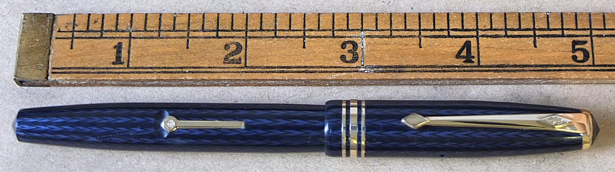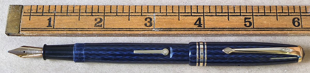 Blue Herringbone (the rarest of the 3 Herringbone patterns) (click on the images below for larger pictures) ![]() (with original MEDIUM No.5 nib) Click HERE and HERE for pictures of the nib ![]() |
