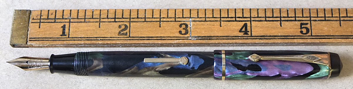 Green marble with Gold veins (click on the images below for larger pictures) ![]() (with original No.3 Medium semi-flexible nib) Click HERE and HERE for pictures of the nib ![]() |