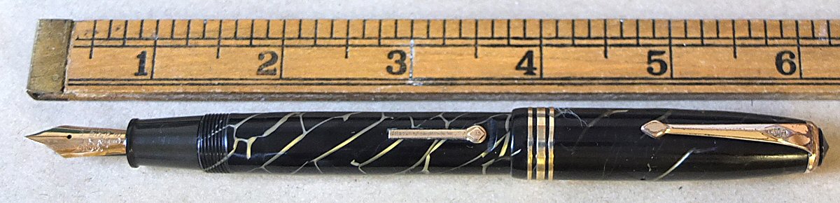 ![]() Cracked Ice (a.k.a. Black & White marble) (click on the images below for larger pictures) ![]() (with original MEDIUM DURO nib - hint of flex) Click HERE and HERE for pictures of the nib ![]() |